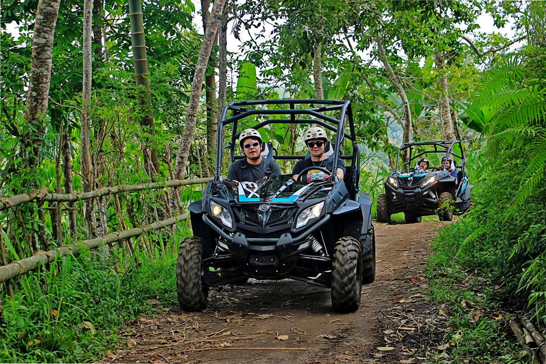 This tour combines the best of two sightseeing adventures, one on the land and one on the water. After having been transferred comfortably with one of our company cars from your hotel to the Bali Quad Base camp you will first get a welcome drink. We will then start with showing you an instruction video, followed by hands on instructions by our professional guides and a driving practice on our training circuit. After that the real adventure begins with the Buggy explorer tour where you will drive your own powerful ZForce 500 4×4 buggy for approx. one hour through an authentic part of Bali, passing a traditional village, driving between rice fields and plantations and exploring jungle while following the muddy trails. For those preferring to enjoy a longer time driving the the buggies we recommend our Bali Buggy Discovery tour combined with our Canyon tubing adventure (click here).