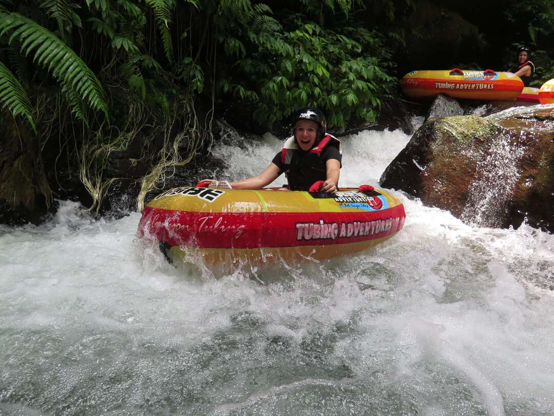 Accompanied by a team of professional guides you will float down the canyon, exploring the exotic wild life. Big chance that you spot some colorful birds or monkeys playing nearby the river bed. At some places we have built suspension bridges and wooden footpaths pass rocks and waterfalls and our guides will help you to get in and out of your tube. You don’t need to be a swimmer, the stream is shallow with an average depth of 40cm to 50cm and at most places you can easily get our of your tube. Our tour is not an extreme adventure and we invite people of all ages to join (starting from 5 years of age), you just need to be in a good physical condition.