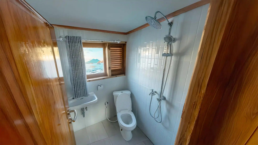 - 1 Master Cabin: Queen Bed (150 x 200 cm), 1 Extra Bed, Ocean View, Lounge Area, Private Bathroom, Private Balcony, Air Conditioning,