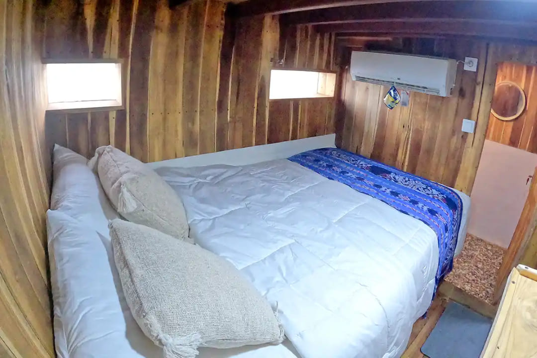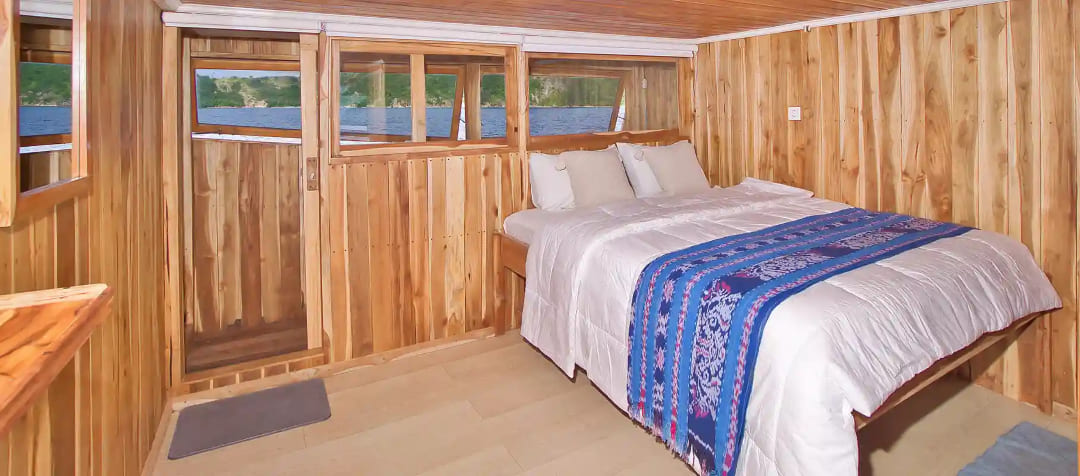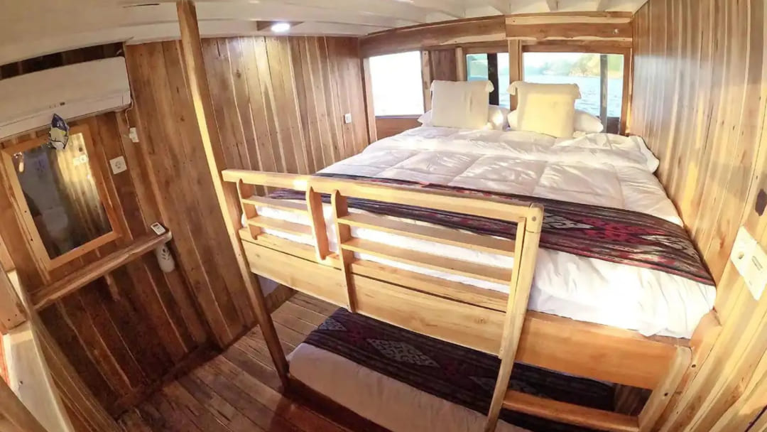 2x Double-room (each 2 pax, Lower Deck): 2 room with double bed, ensuite bathroom, air conditioner. Capacity up to 2 persons in each cabin